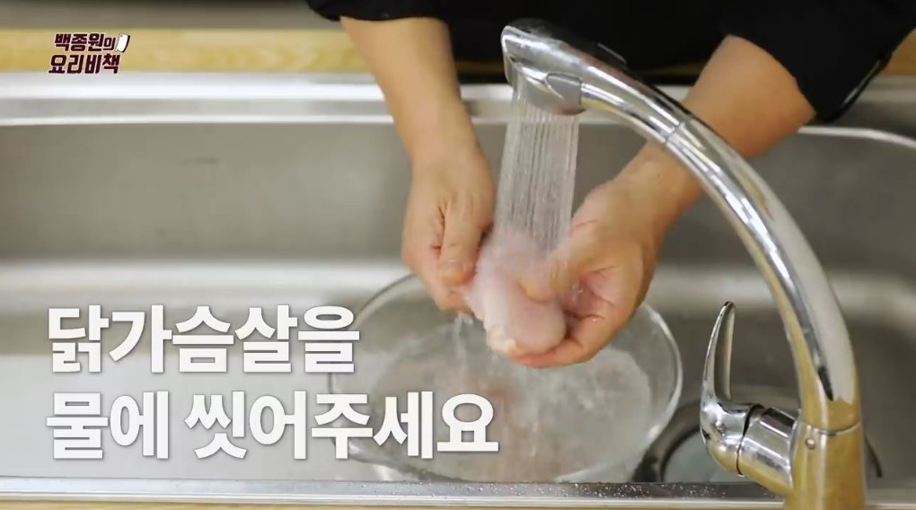 1. 먼저 준비한 닭가슴살을 흐르는 물에 깨끗이 씻어주세요.
