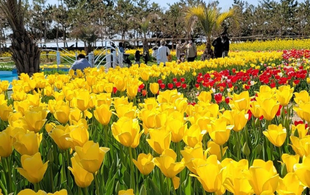 태안 꽃지해수욕장은 말이 필요 없는 국내 최고의 해안 중 한 곳으로 손꼽히는 곳입니다. 할미, 할아비바위로 떨어지는 낙조가 아름답기로 유명한 꽃지해수욕장에는 바로 뒤편에 꽃지해안공원이 위치해 있는데, 2002년 안면도 국제 꽃박람회의 성공을 기원하고 국민에게 새로운 휴식처를 제공하기 위하여 조성된 테마파크입니다. 이곳에는 화려한 꽃들이 많으며 4월에는 튤립축제, 빛축제 등 다양한 행사가 열립니다. 따라서 따스한 봄에 꽃들의 대향연이 펼쳐지는 아름다움이 장관을 감상하러 방문하시길 적극 추천드리는 장소입니다.