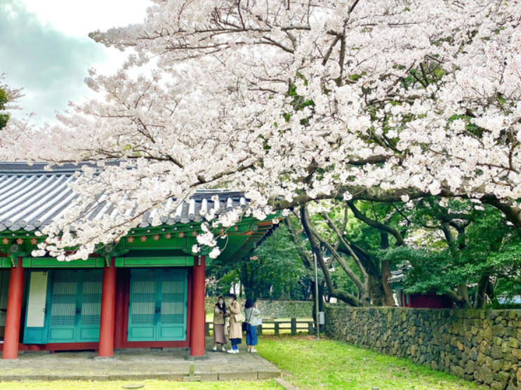 4계절 내내 꽃을 감상할 수 있는 제주도는 유채꽃과 매화도 유명하지만 아름다운 벚꽃 명소를 많이 보유한 곳이기도 합니다. 유독 벚꽃 명소가 많은 제주도는 서귀포에 가시리 유채 벚꽃, 위미리, 제주대, 애월 고등학교 등등 수많은 벚꽃 명소들이 많지만, 그중에서도 제주 삼성혈이 가장 추천드리는 장소입니다. 삼성혈은 우리나라에서 가장 오래된 유적으로 국가지정문화재 사적 제134호로도 지정된 곳입니다. 이곳을 방문하면 전시실, 삼성전 주위를 둘러보면서 벚꽃 구경과 더불어 역사를 공부하기에 좋아 아이들과 함께 방문하면 좋은 곳입니다. 삼성혈 숭보당(崇報堂) 앞에 가면 한 그루의 커다란 벚꽃나무가 기울어 숭보당의 지붕을 감싸고 있는 모양을 하고 있어서 대표적인 벚꽃 인생 샷 스팟으로 이름나 있습니다. 옛 건축물과 분홍색으로 만개한 벚꽃을 동시에 보고 있으면 그 특유의 고즈넉한 분위기에 흠뻑 취할 수 있으니 이 시기 꼭 방문해 보시길 바랍니다.