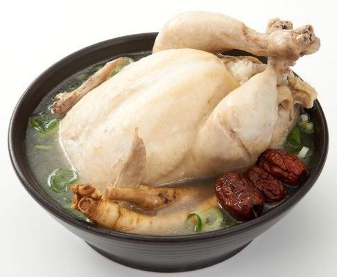 재료 : 7호 닭 2마리, 불린 녹두 약 반컵, 불린 찹쌀 약 반컵 (찬물에 1시간 불려두세요), 마늘 6개, 은행 6개, 건대추 4개, 송송 썬 대파 약간(고명용), 송송 썬 청양고추 약간 (고명용)