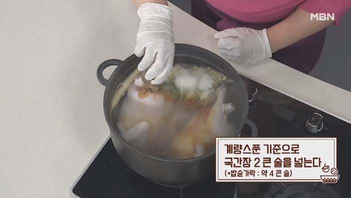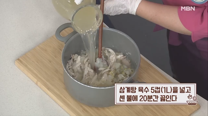 17. 마지막으로 송송 썬 대파와 청양고추를 적당히 넣으면, 이보은 요리연구가의 삼계탕 황금레시피가 완성됩니다.