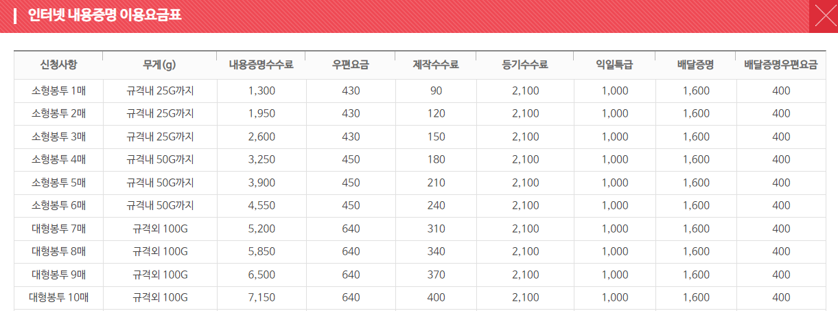 또한, 내용에 따라 배달증명이 필요할 경우 별도로 신청할 수 있으며, 이 경우 추가 비용이 발생합니다.