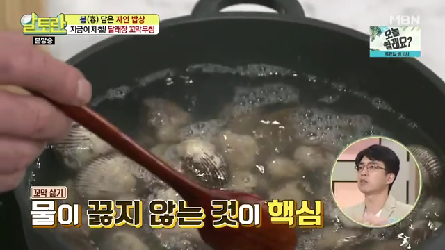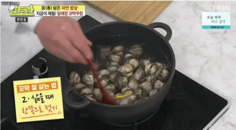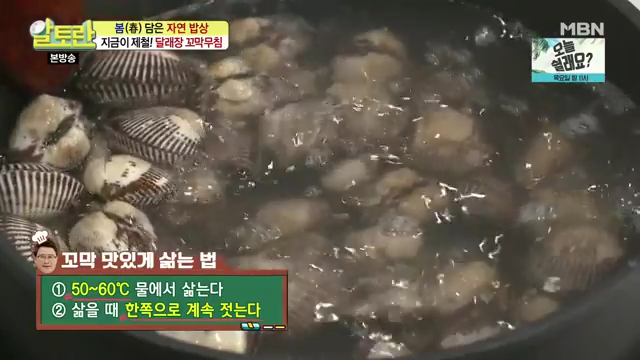 팔팔 끓는 물에 바로 넣으면 꼬막의 살이 수축해 쪼그라든다고 해요. 그래서 꼭 중탕처럼 살짝 뜸을 들여서 삶아야 한다고 하네요.