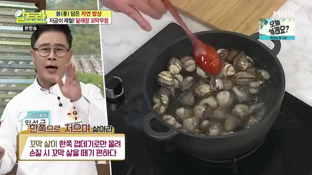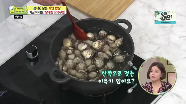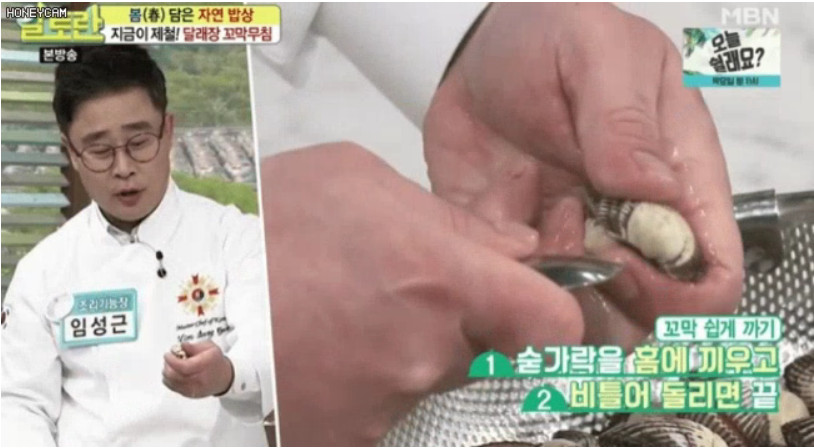 그리고 계속 한쪽 방향으로만 저어주면 꼬막살이 한쪽 껍데기로 몰려서 살을 쉽게 떼낼 수 있다고 해요. 만약 저어주지 않으면 양쪽 껍데기에 다 붙어 있어 떼기가 어려워진다고 하네요.