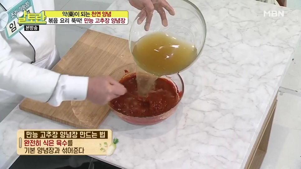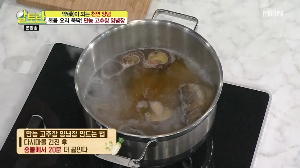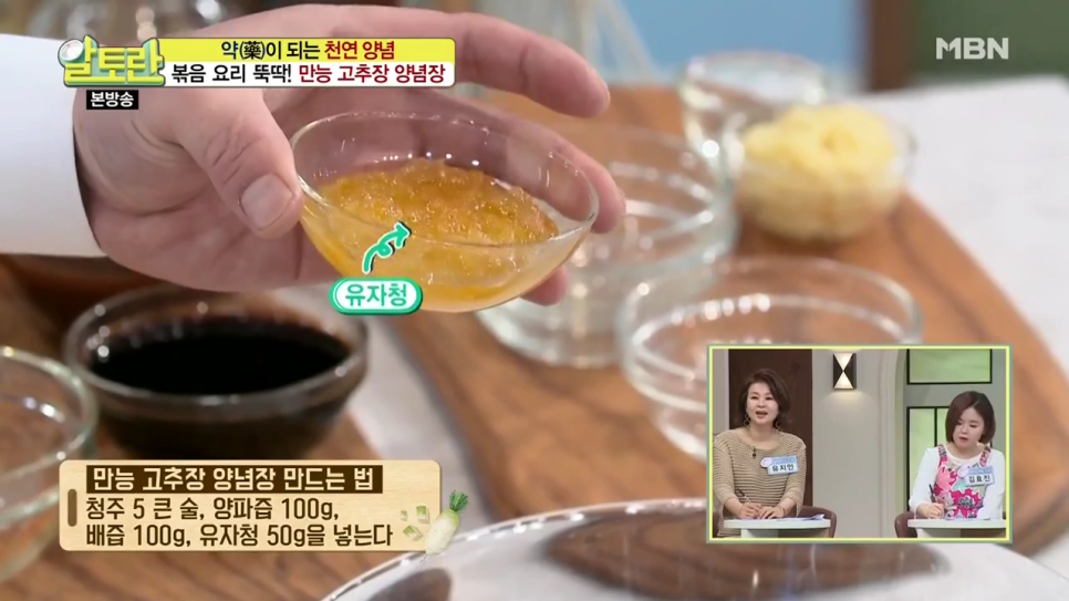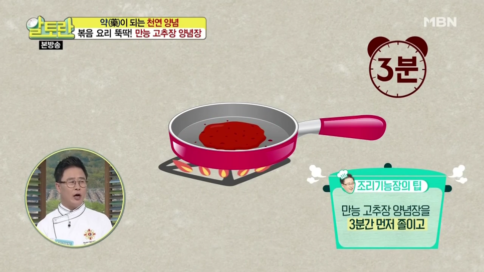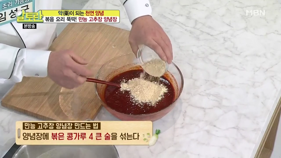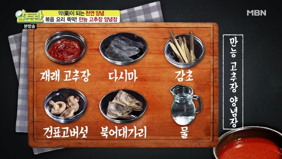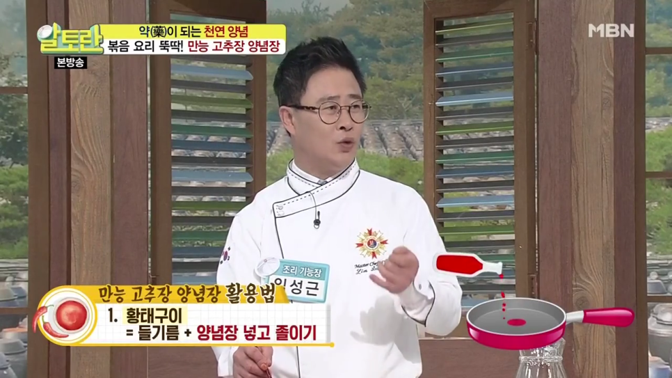 이번 알토란에서는 설탕, 소금, 인공조미료를 사용하지 않고도 볶음, 구이, 찜 등 다양한 요리에 활용할 수 있는 건강한 천연양념장, 바로 만능 고추장양념장 레시피를 배워봤어요. 사람의 몸에 독소가 쌓이는 원인은 오염된 환경, 물, 공기 등 여러 가지가 있지만, 가장 큰 원인은 우리가 섭취하는 음식 속 잘못된 양념이라고 합니다. 생각보다 많은 화학물질이 양념에 포함되어 있더라고요.