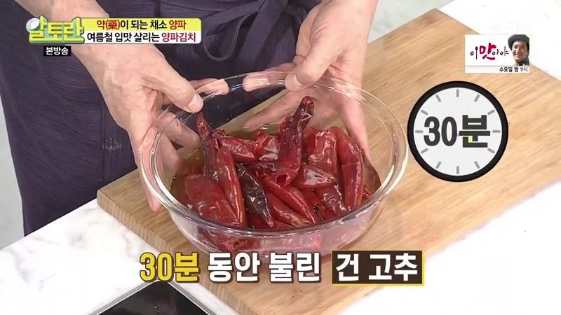 30분이 지나면, 고추를 불린 물은 절대 버리지 말고 그대로 사용해 주세요!