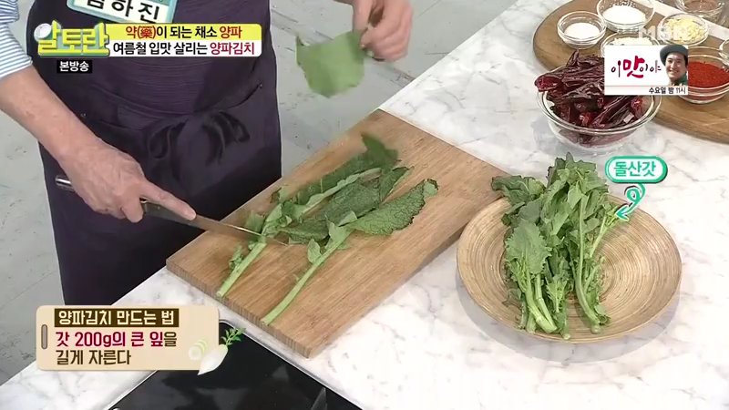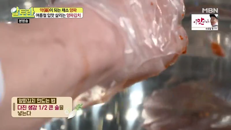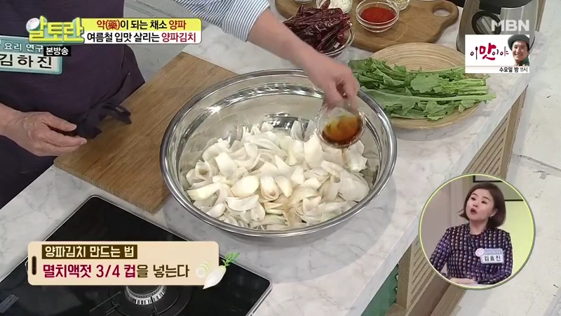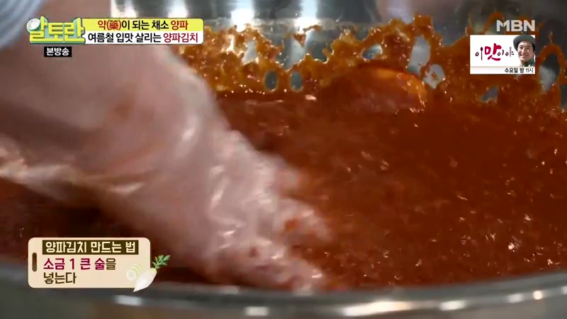알토란 양파김치의 핵심 비법은 바로 갓을 넣는 것인데요. 양파는 표면이 매끄럽기 때문에 양념이 잘 안 묻는 편이에요. 그래서 갓을 넣으면 양념이 잘 스며들어 맛이 훨씬 잘 어우러진다고 합니다.