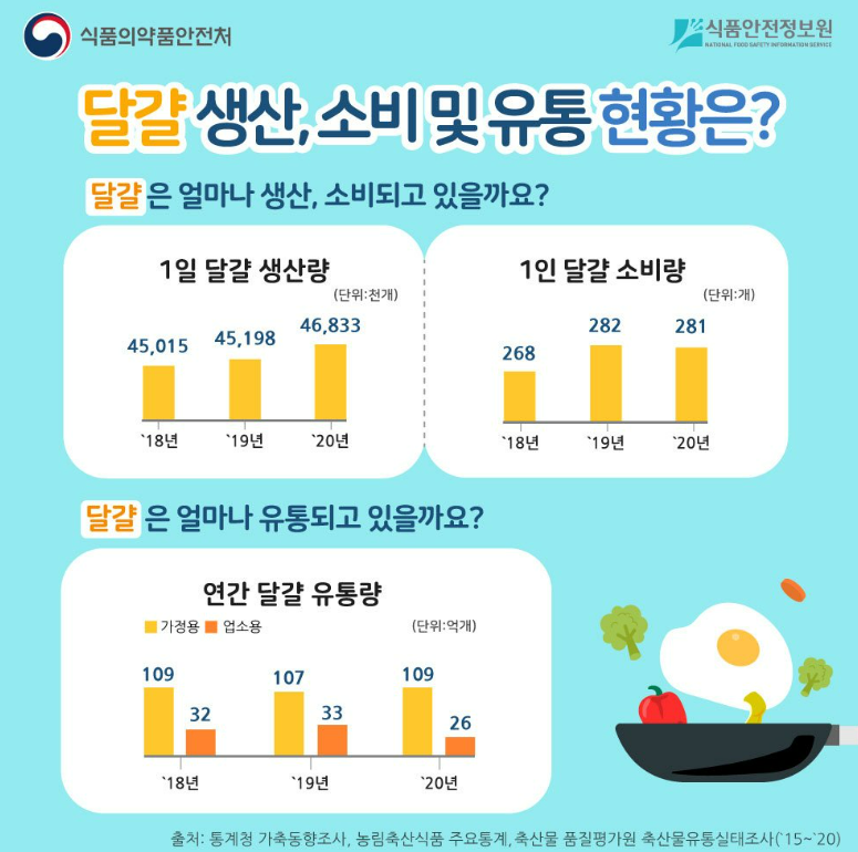 식약처에서는 달걀의 권장 유통기한을 산란일로부터 45일로 정하고 있습니다.