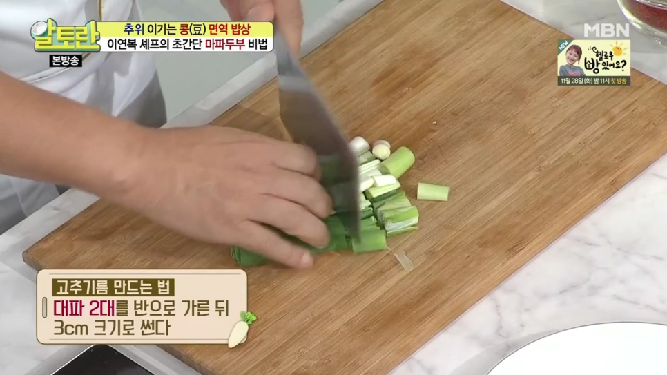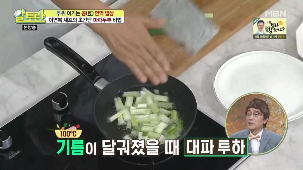 기름이 충분히 달궈졌을 때 대파를 넣으면 향긋한 파 향이 잘 우러난다고 하네요.