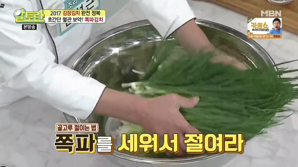 쪽파는 뿌리가 두껍고 줄기가 얇아서 한 번에 절이면 뿌리는 덜 절여지고 줄기는 너무 물러질 수 있어요.