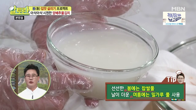 날씨가 선선한 봄에는 김치를 빨리 익게 만드는 찹쌀풀을 사용하고, 날이 더운 여름에는 밀가루 풀을 사용한다고 하니 참고하세요^^