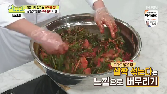 날씨가 더워서 반나절 정도 실온에 두고, 그 후 냉장고에서 하루 더 숙성시키면, 상큼하고 씹히는 맛이 일품인 알토란 부추김치가 완성됩니다!
