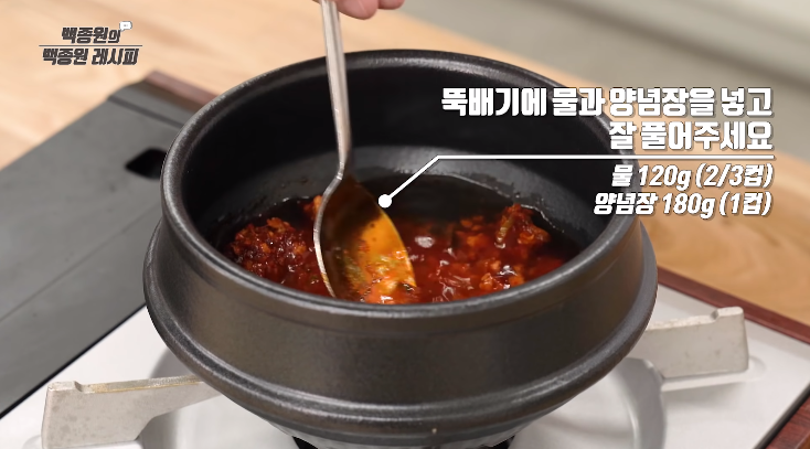 고춧가루는 쉽게 탈 수 있으므로, 불을 잠깐 꺼서 고춧가루에 물을 섞어 볶는 것이 좋습니다.