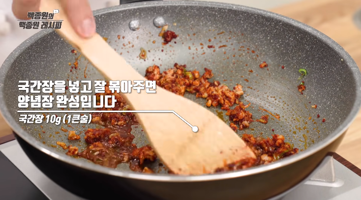 7. 그 후, 간장을 넣고 마무리 볶아주세요.