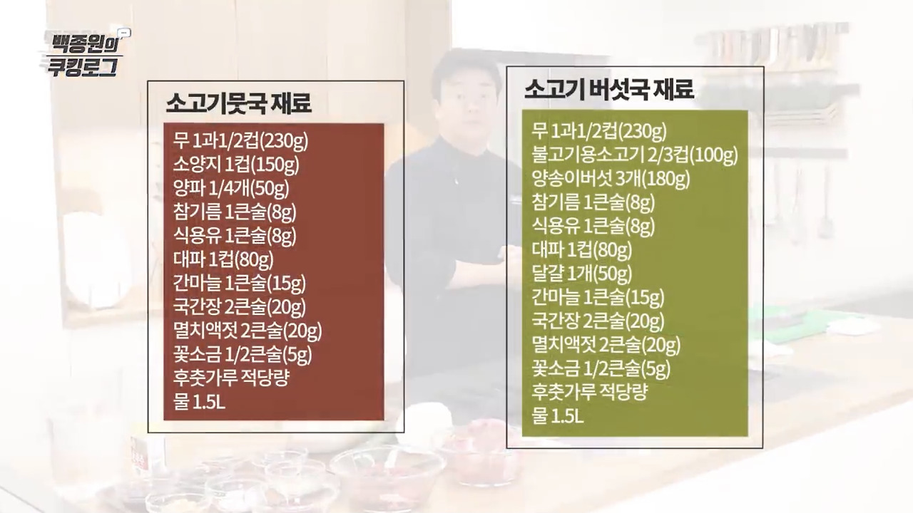 특히 가을에 수확한 무는 '밭에서 나는 인삼'이라고 할 만큼 맛이 좋고 영양이 풍부한데요. 소고기무국 외에도 남은 무를 활용해 무조림, 무나물, 무생채, 무말랭이무침 등 다양한 반찬을 만들 수 있어 더욱 유용합니다. 이제 소고기무국을 맛있게 만드는 방법, 백종원 선생님의 황금레시피를 하나씩 알아보겠습니다.