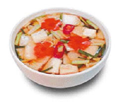 나박김치는 이름이 참 재미있는 음식인데요, '나박나박' 썰어서 담근 김치라는 뜻도 있고, 예전에는 무를 '나복(羅蔔)'이라고 불렀기 때문에 무를 넣어 담근 김치라는 의미도 있다고 합니다.