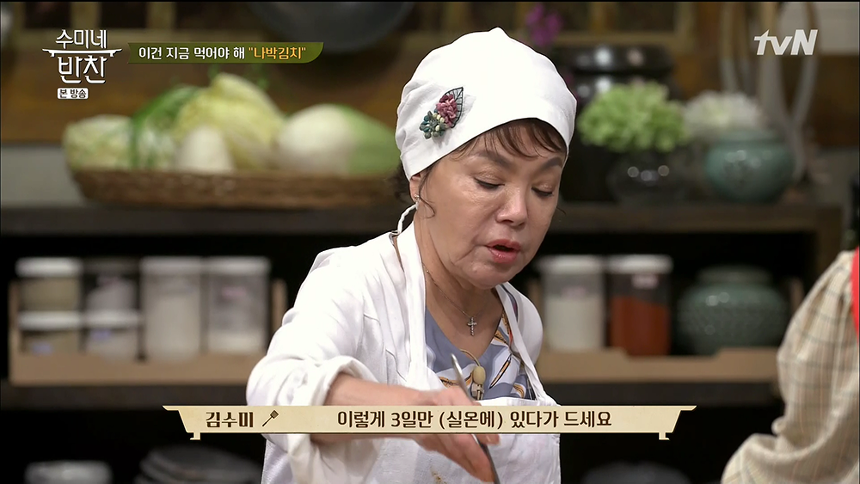‘떡 줄 사람은 생각도 않는데, 김칫국부터 마신다’는 속담에서 ‘김칫국’이 사실 나박김치를 의미했다는 점이 참 재미있어요. 올 추석에는 김수미 선생님의 나박물김치 황금레시피를 참고해서 맛있게 담그고, 가족분들과 함께 즐거운 식사 시간 되시길 바랍니다.