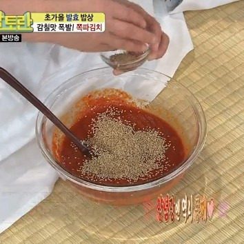 양념장 : 쪽파 절였던 국간장 4큰술, 멸치액젓 3큰술, 다진마늘 3큰술, 다진 생강 반 큰술, 설탕 2큰술, 통깨 20g