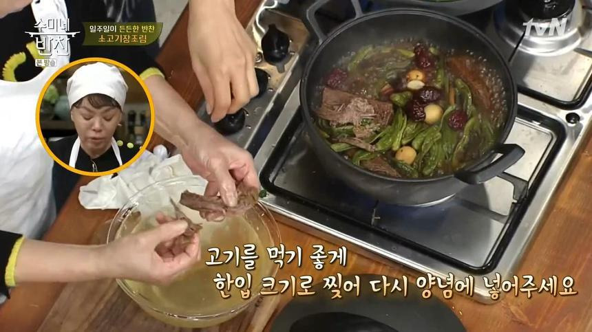 소고기를 삶을 때, 압력솥을 사용하면 시간이 절약되며 고기가 더 부드럽게 조리됩니다. 압력솥에 고기와 다른 재료들을 넣고 약 30분간 삶은 후, 고기를 찢어 양념에 넣고 조려 주세요.