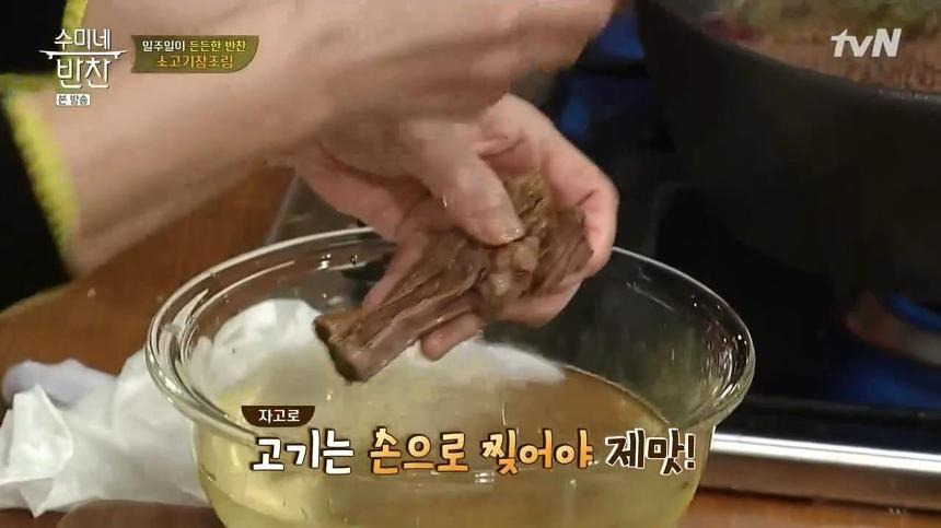 14. 고기가 덜 익은 상태에서 찢으려면 상당히 어려울 수 있다고 합니다. 그래서 고기를 조금 찢어서 익은 정도를 확인한 후 진행하시면 더 수월하답니다.