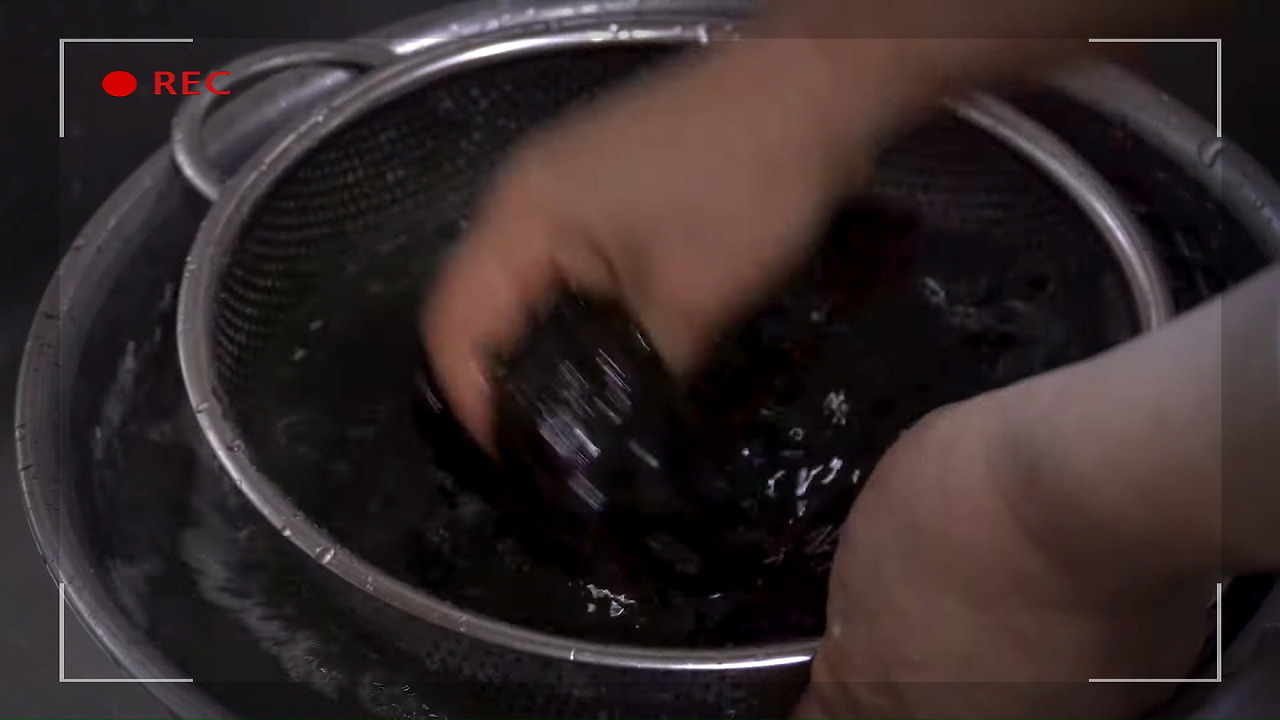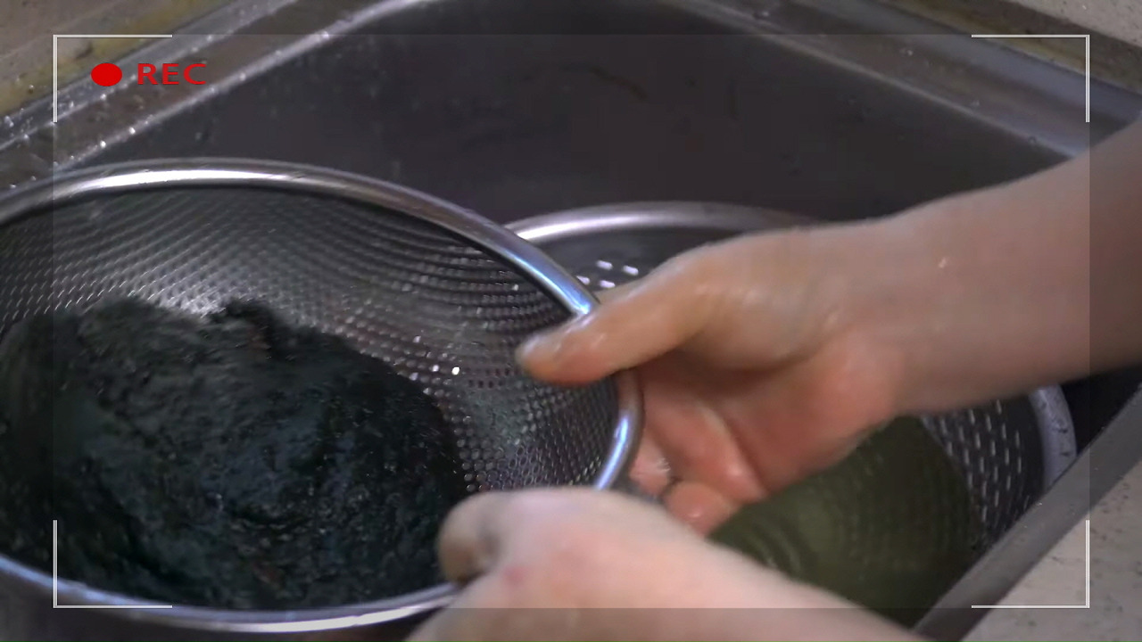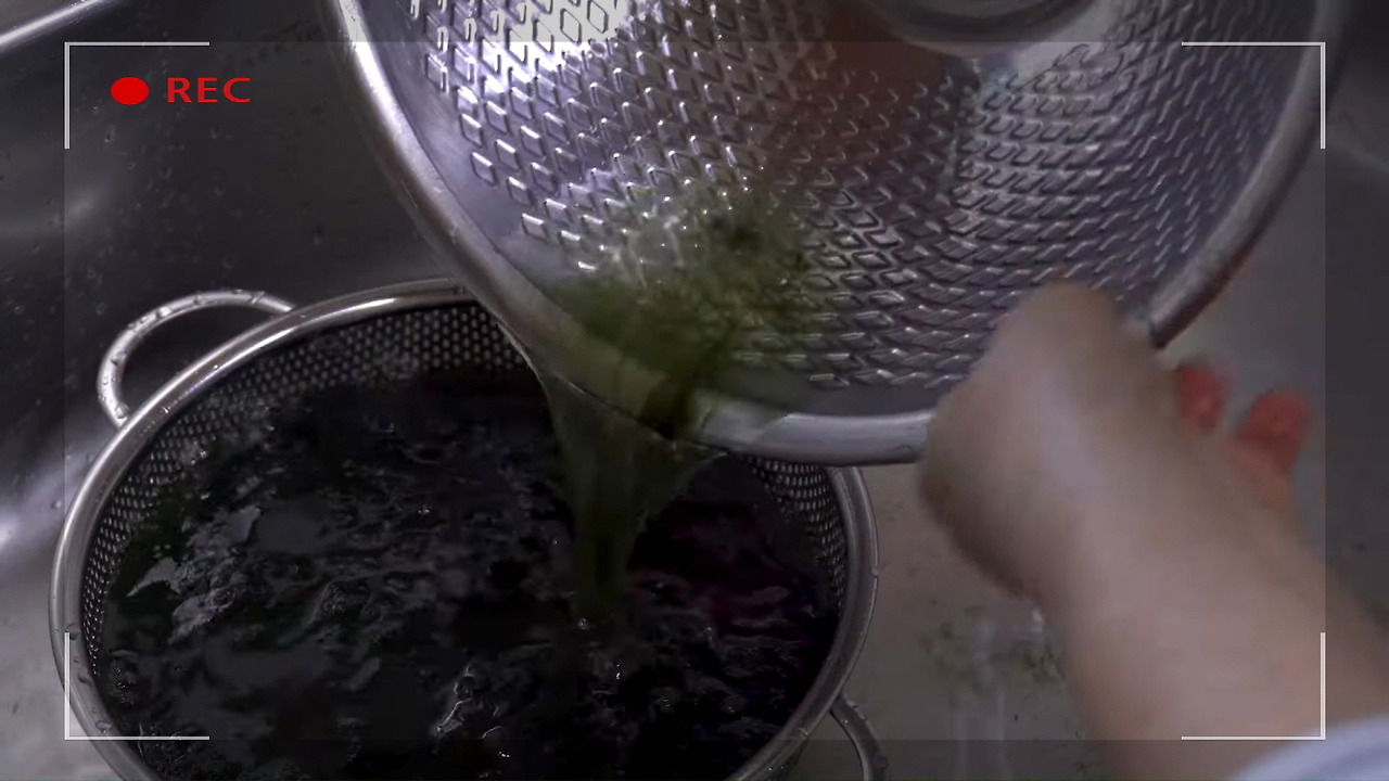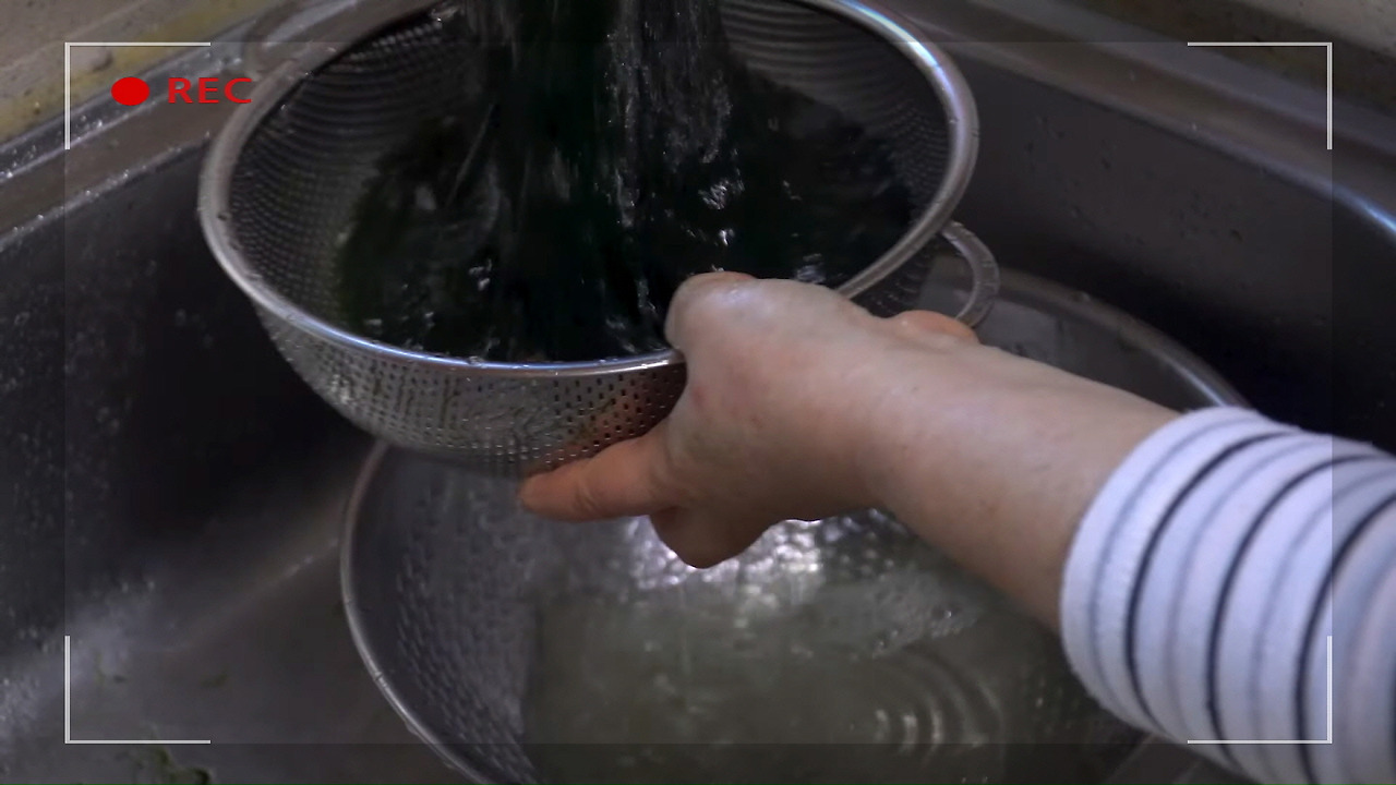 깨끗이 씻은 매생이는 채에 받쳐 물기를 제거해 줍니다.