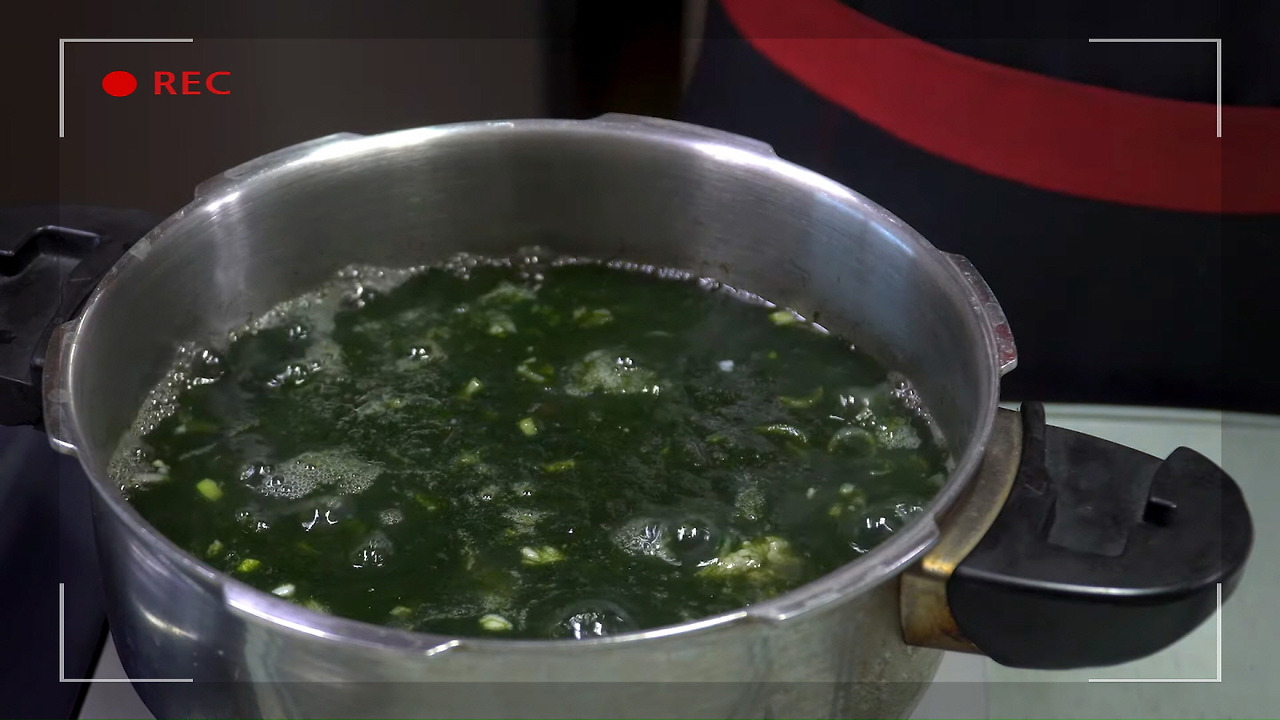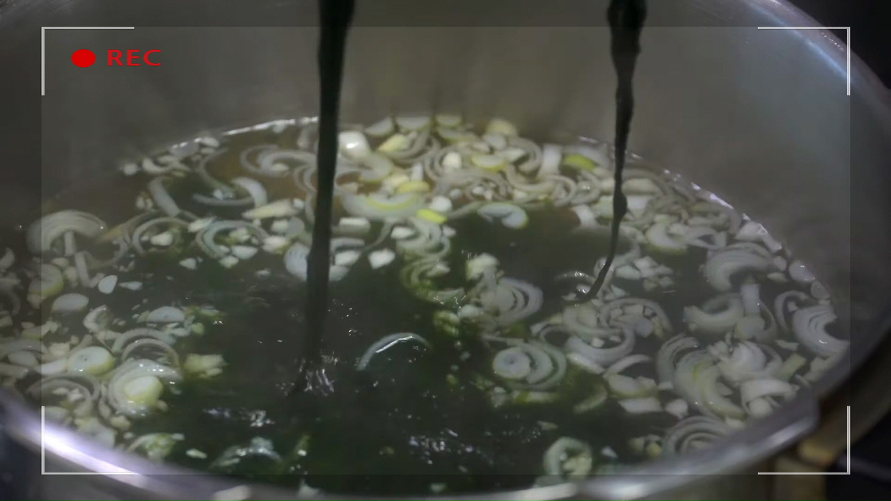 앞서 끓여두었던 매생이 굴국 육수에서 10분 후 다시마를 건져낸 뒤, 추가로 6~7분 더 끓입니다. 그 후, 남아 있는 건더기까지 모두 걸러내면 육수 준비가 완료됩니다.