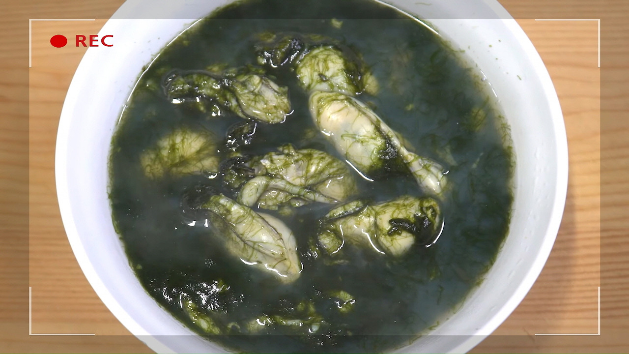 이렇게 해서 진한 풍미와 깔끔한 맛이 어우러진 매생이 굴국이 완성되었습니다.