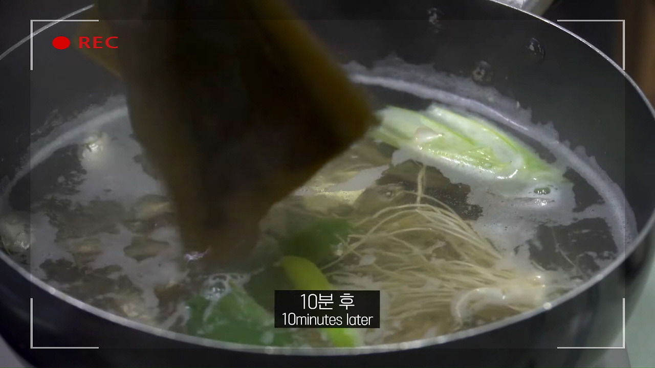여기에 다시마와 멸치 약 12마리를 추가로 넣어주면 더욱 깊은 맛을 낼 수 있습니다.