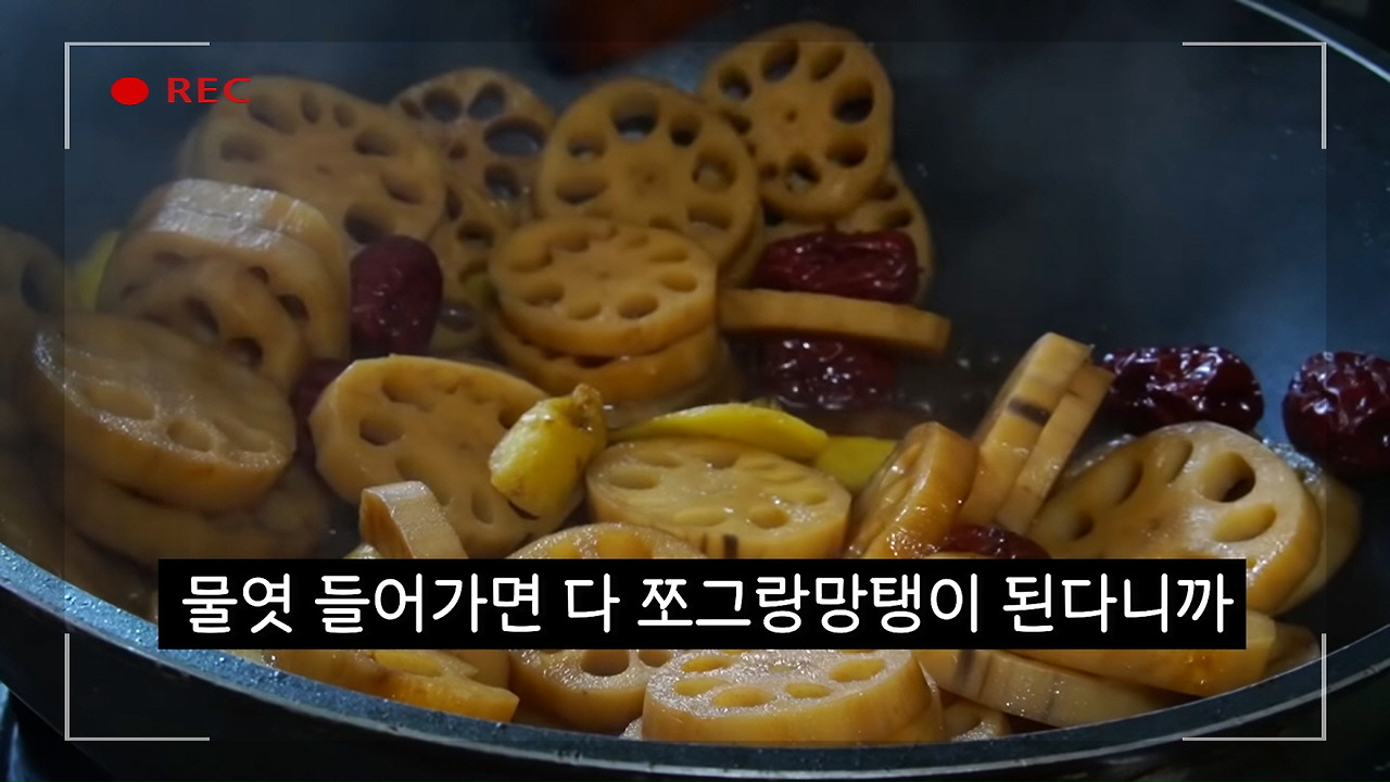 평소 레시피를 공부할 때 즐겨보는 유튜브 채널 <[윤이련] 50년 요리비결>의 '[쫀득한 연근조림 비법] 연근을 다 익히고 졸이세요. 쫀득하고 윤기 자르르한 연근조림 만드는 법' 영상을 참고했습니다.