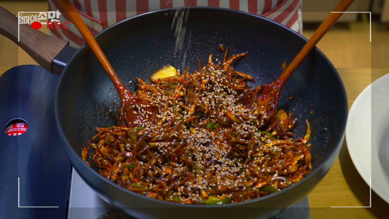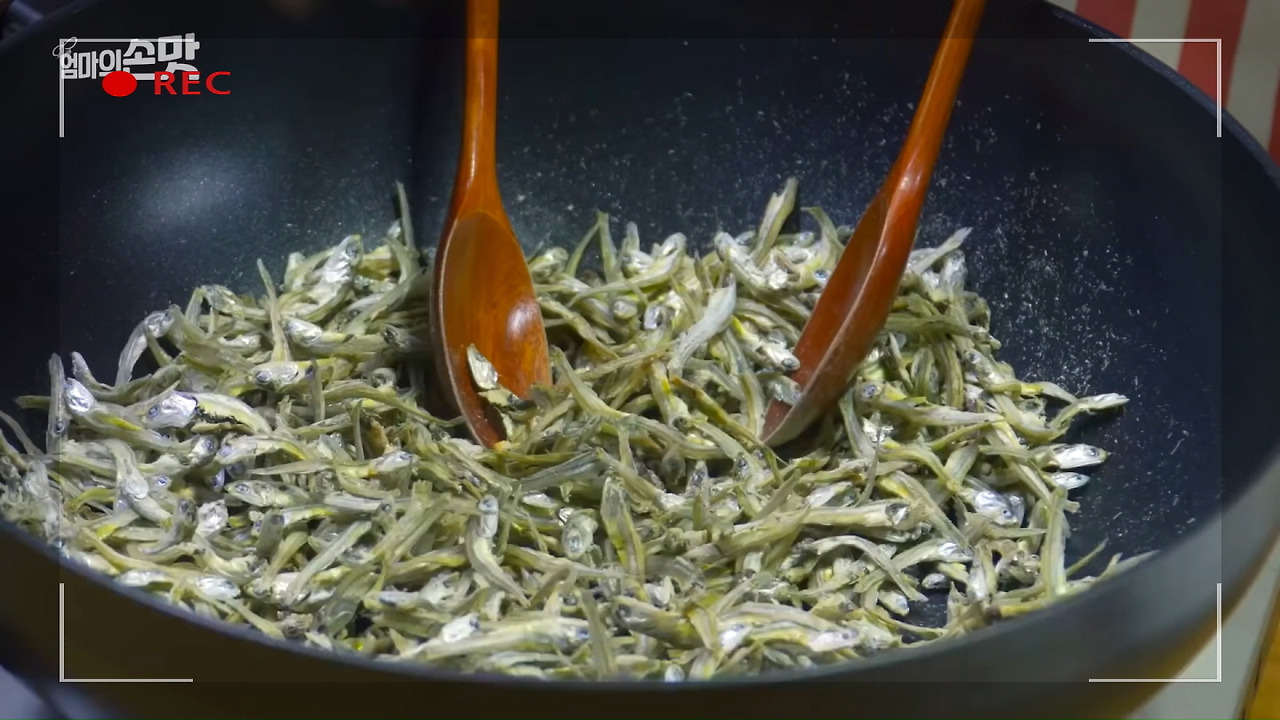 평소 레시피를 공부할 때 즐겨보는 유튜브 채널 <엄마의손맛> 채널의 '밥상 위에 단골손님 고추장으로 볶아 더 맛있는 멸치볶음' 영상을 소개했습니다.