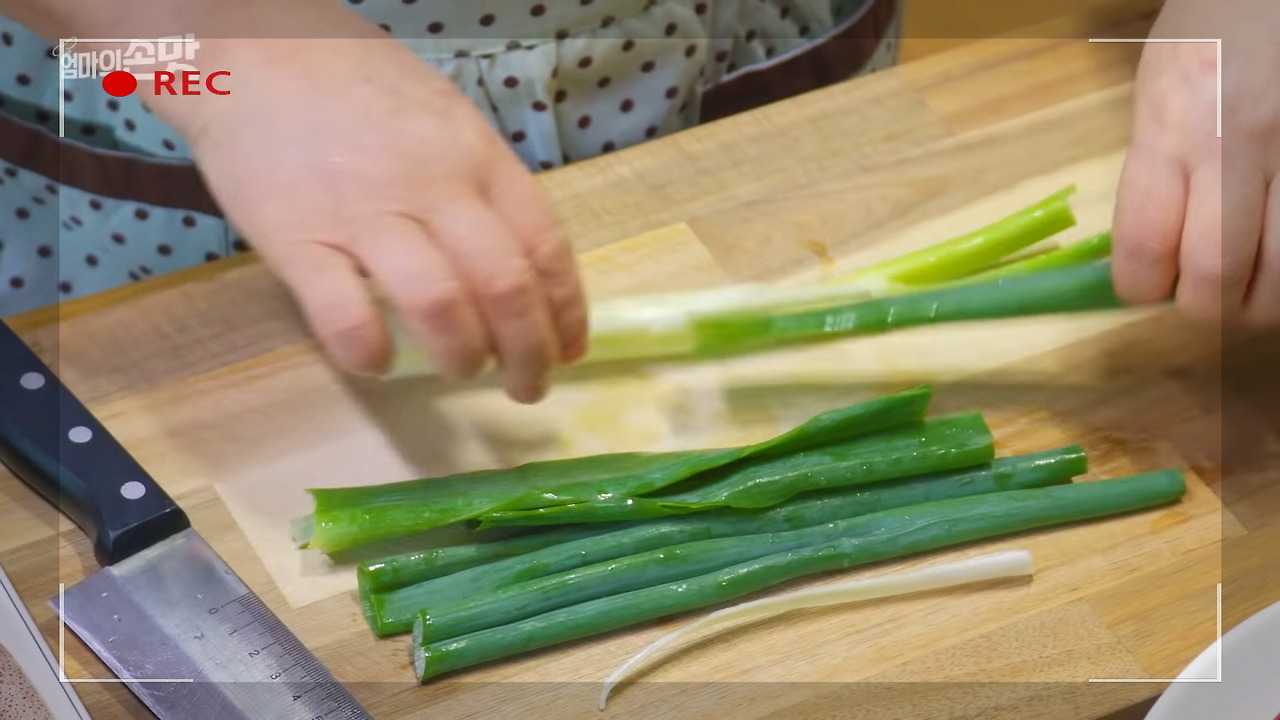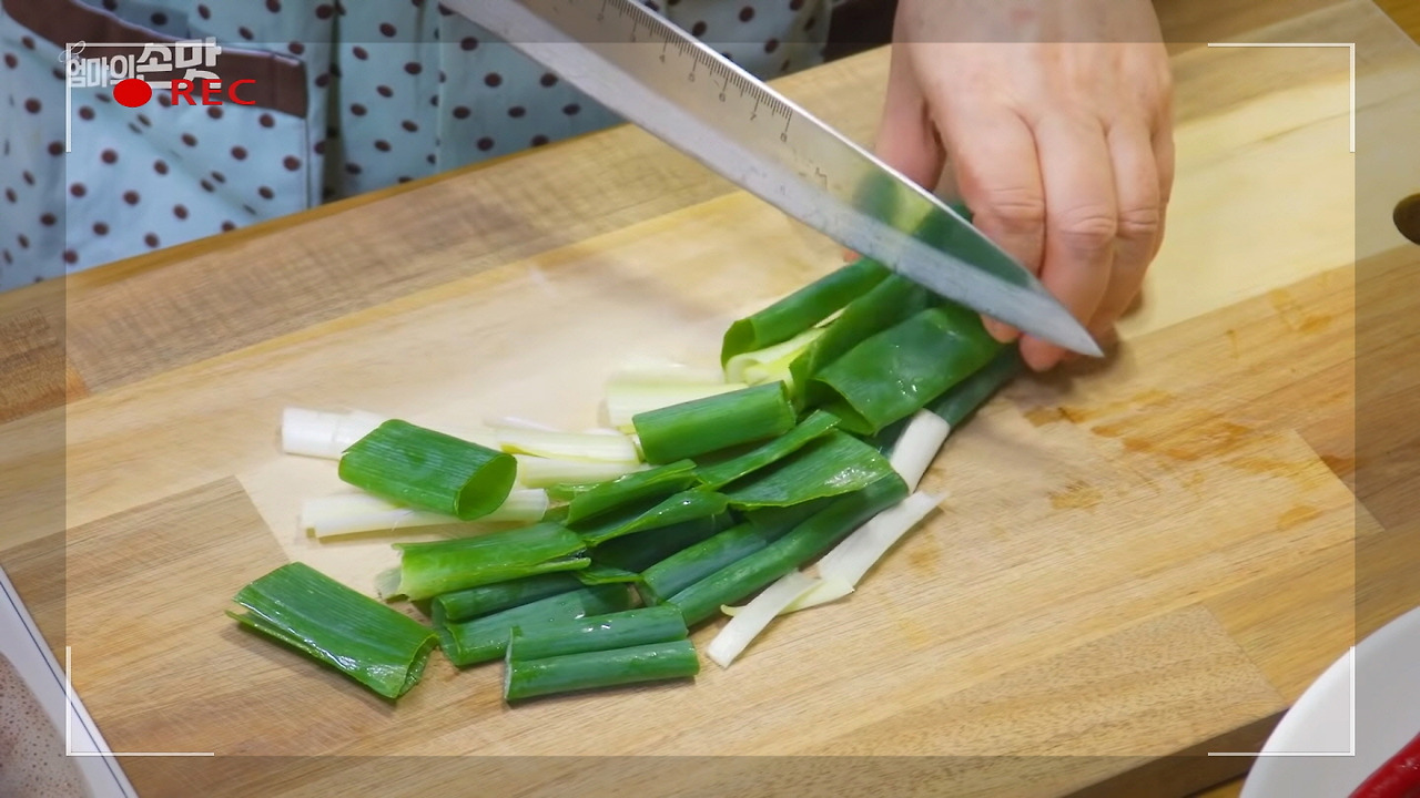 대파도 먹기 좋은 크기로 썰어주세요. 대파는 오징어볶음에 있을 수 있는 잡내와 누린내를 없애주어, 더욱 깔끔한 맛을 느낄 수 있게 해줍니다.