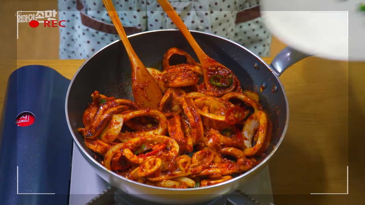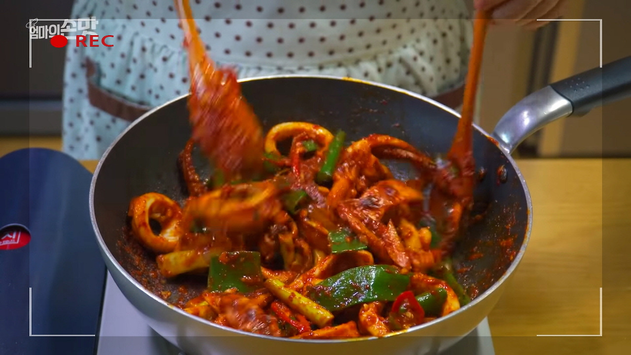 평소 레시피를 공부할 때 즐겨보는 유튜브 채널 <엄마의손맛>의 ‘누구나 쉽게 물 안 생기고 맛있게 매운맛 오징어볶음’ 영상을 소개해드렸습니다.
