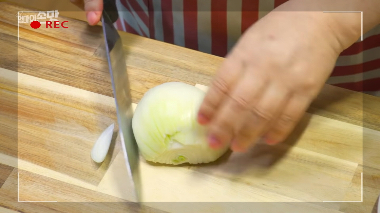 양파 반 개는 슬라이스로 썰어 제육볶음에 은은한 단맛과 식감을 더해주세요.
