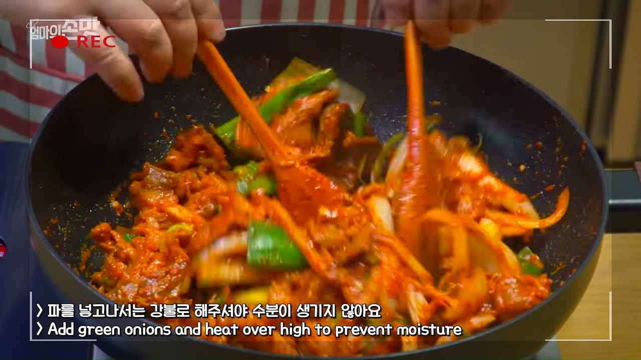 대파를 넣은 후부터는 불을 강불로 올려 높은 온도에서 볶아줘야 국물이 생기지 않고 더욱 맛있게 완성됩니다.