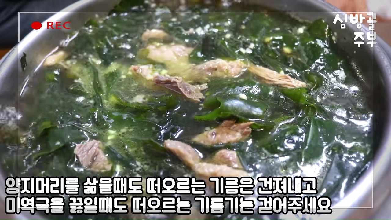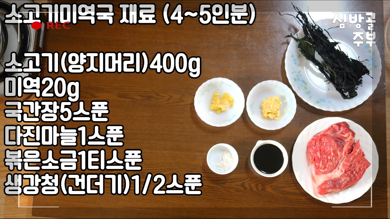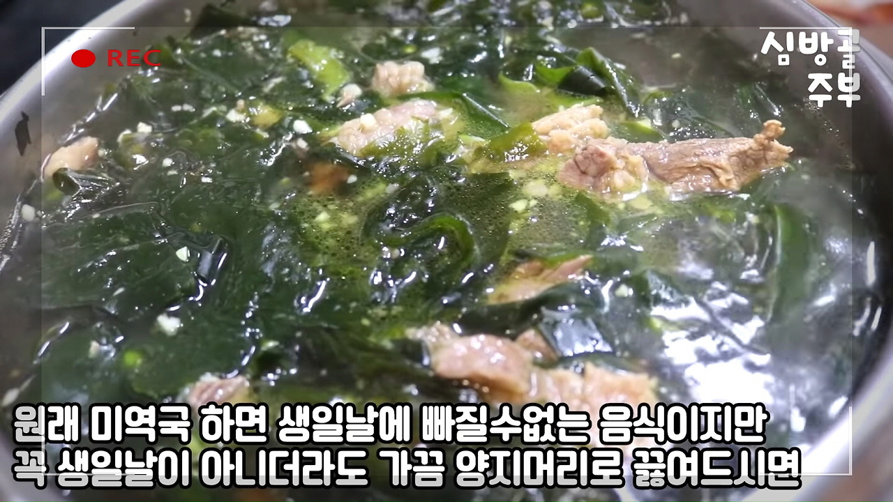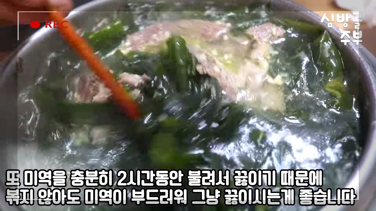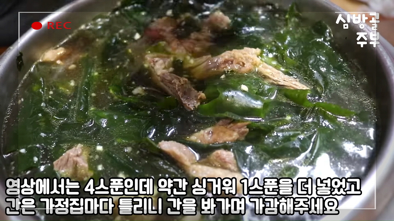 평소 레시피를 공부할 때 즐겨보는 유튜브 채널 <심방골주부Korean Food Recipes>의 '소고기미역국 쉽지만 맛있게 끓이는 심방골주부만의 팁이 있답니다. 미역국 황금레시피' 영상을 소개해드렸습니다.
