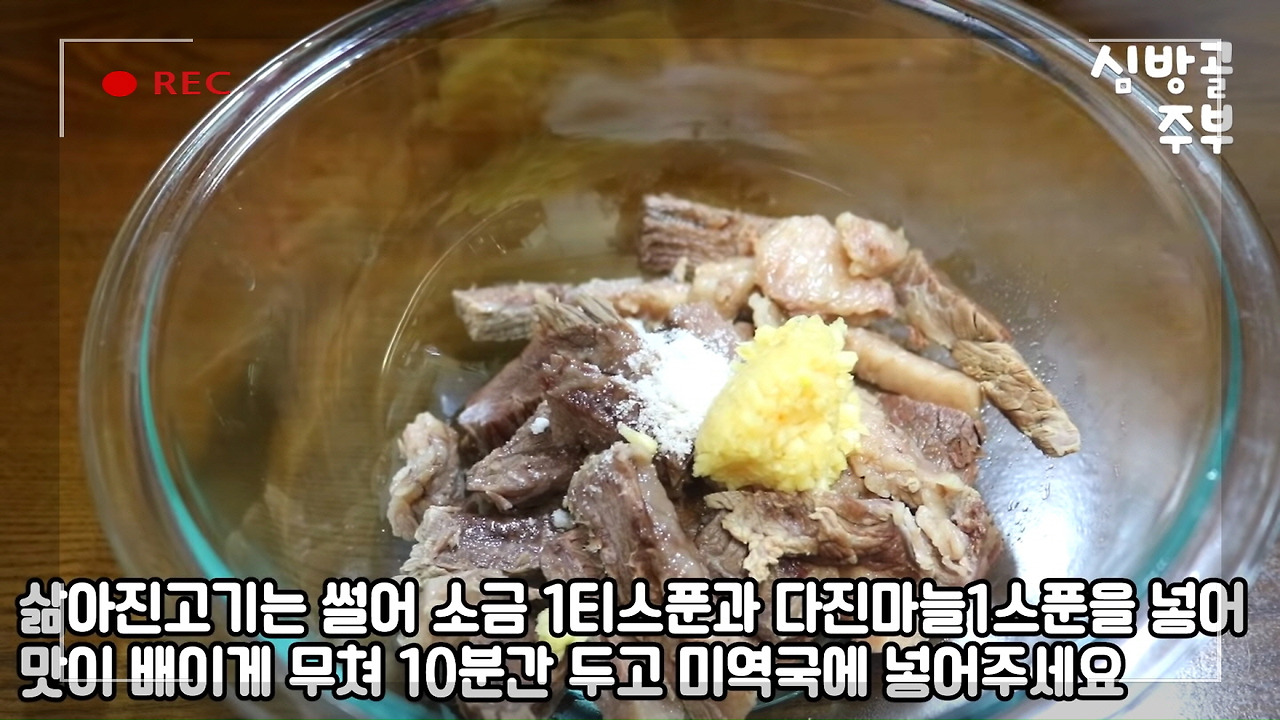이렇게 삶아진 고기를 맛있게 무쳐주었다면, 미역국 끓이는 법의 마지막 단계를 살펴보러 가겠습니다.