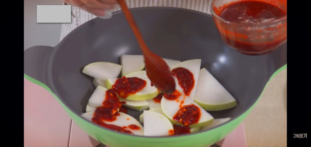 설탕 반 스푼을 넣어 고등어 무조림에 살짝 단맛을 더해 줍니다. 양념장이 잘 섞였으면, 이제 본격적으로 고등어 무조림을 만드는 방법을 알아보아요!