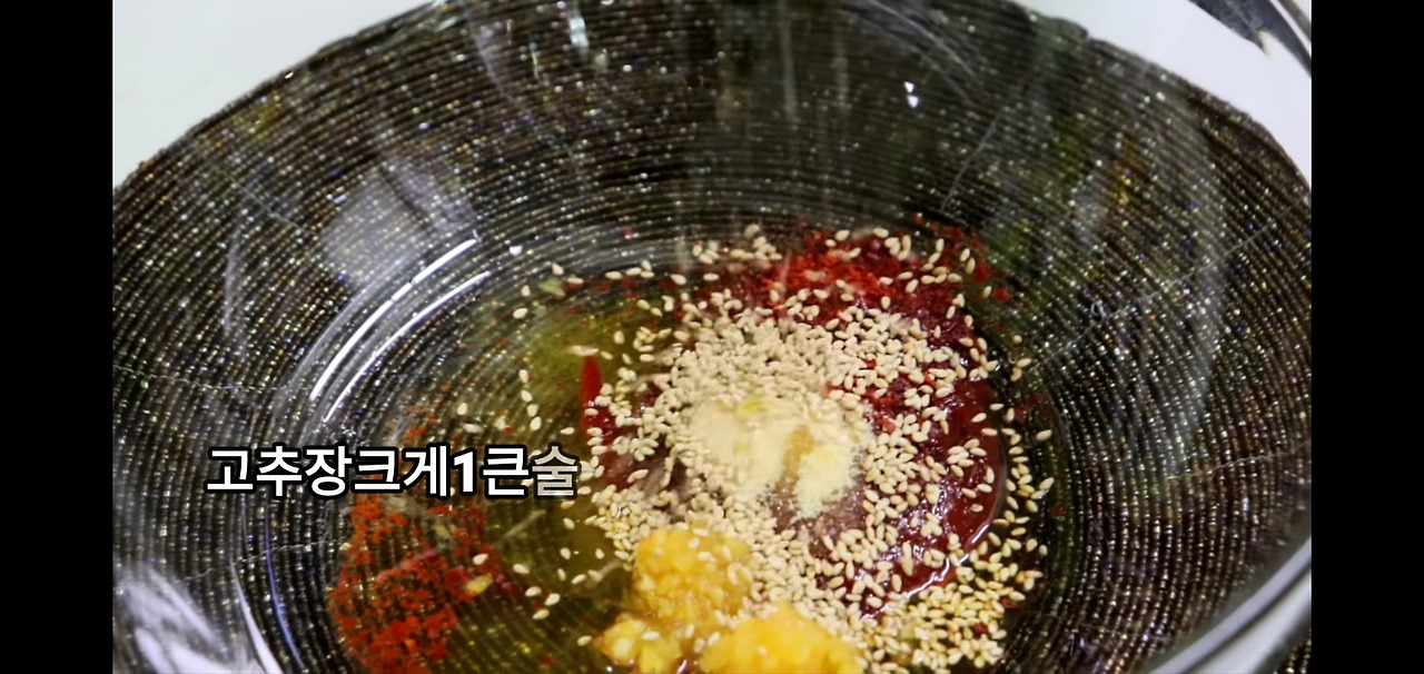 다진 마늘 반 스푼과 들기름 1.5스푼, 통깨를 솔솔 뿌려주면 고소하고 마늘의 알싸한 향이 퍼지는 맛있는 시금치 고추장무침 양념장을 만들 수 있습니다.