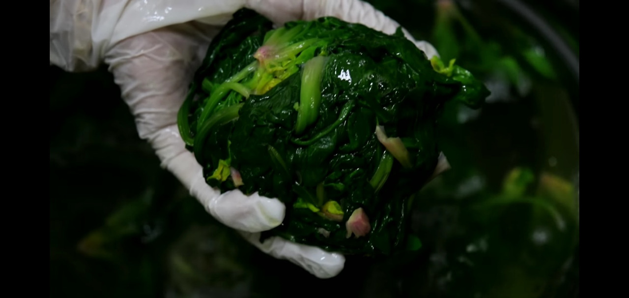 찬물에 담가 충분히 식혀준 시금치는 손으로 꾹 눌러 물기를 짜서 무칠 준비를 해줍니다.