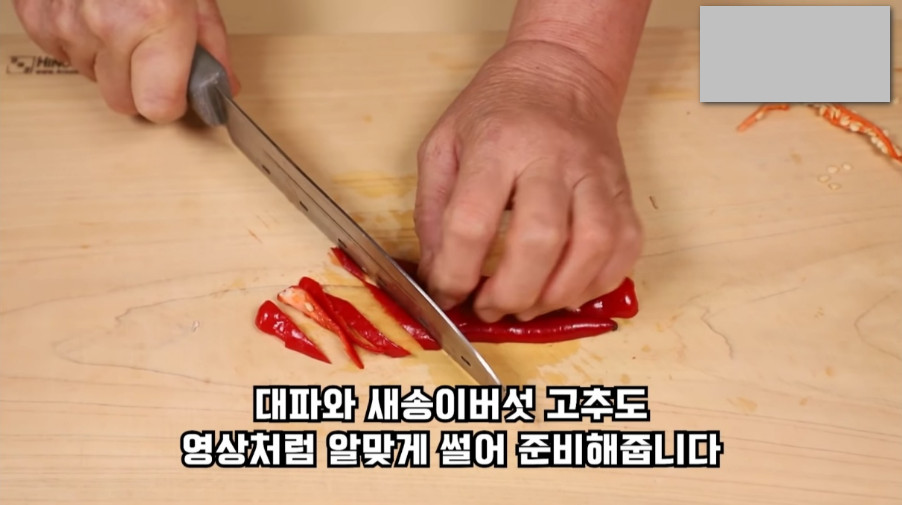 새송이버섯과 먹음직스러운 색감을 더해주는 홍고추도 알맞은 크기로 썰어 준비해주면, 소불고기 황금레시피의 재료 손질이 모두 끝납니다!