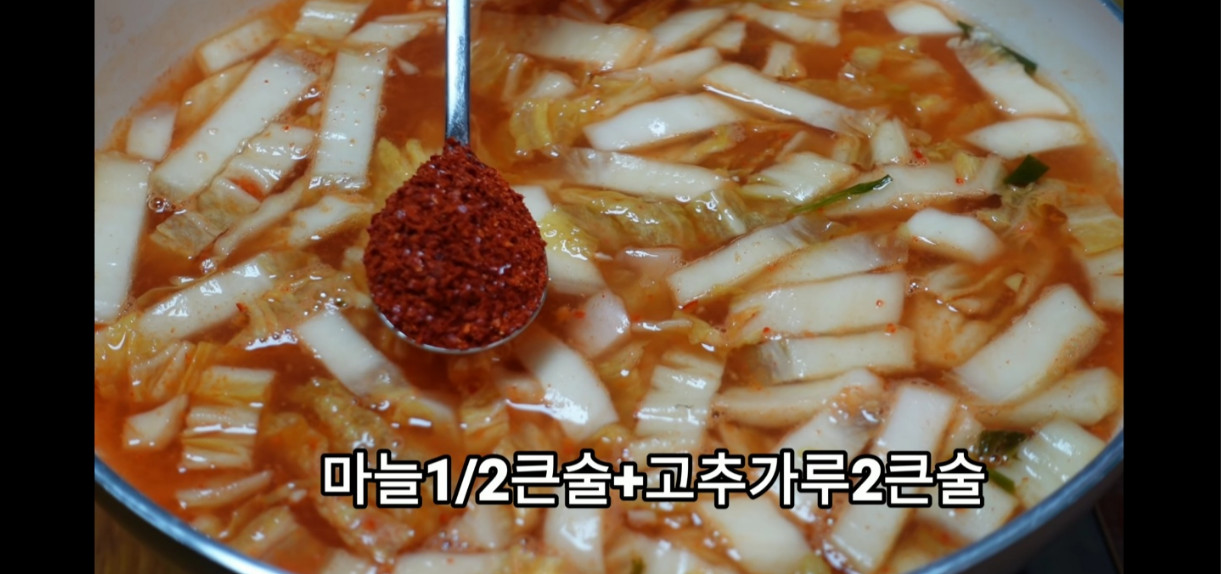 김치가 잘 익은 것이 보이면 간을 보고 꽃소금과 멸치액젓으로 간을 맞춰주세요. 개인적으로 꽃소금 반 스푼과 멸치액젓 2스푼 정도가 가장 적절했습니다.