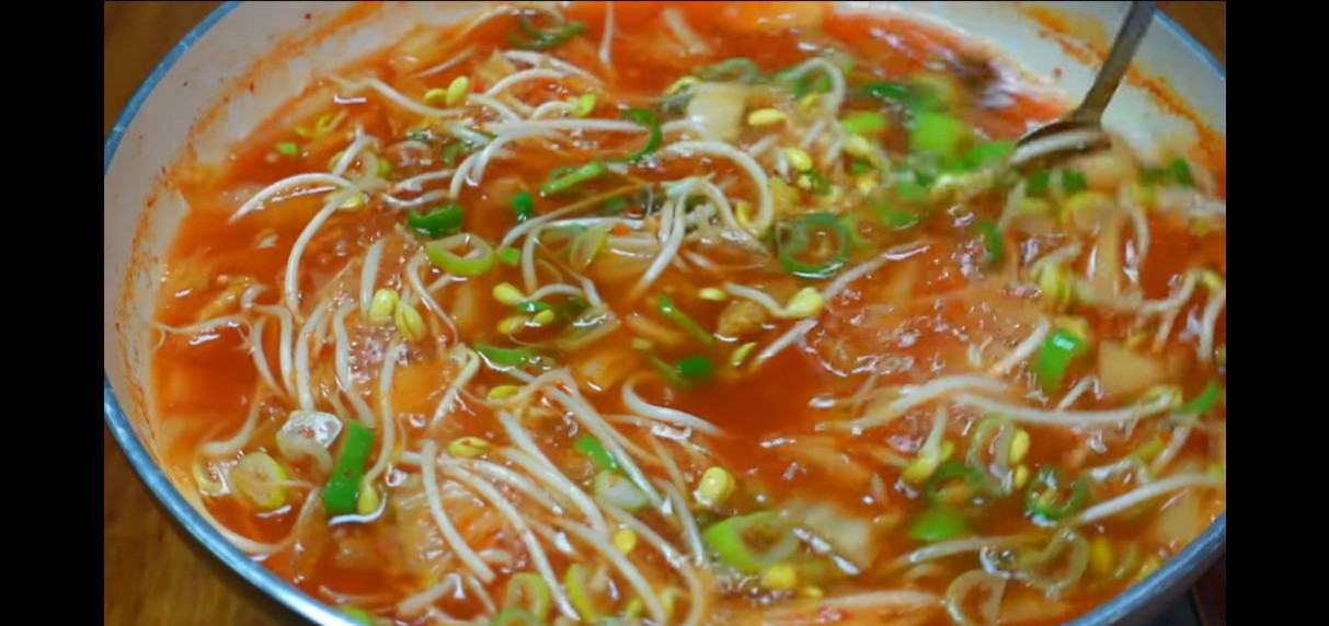 이렇게 콩나물을 넣기 전에 김치가 푹 익도록 끓여주어야 김치의 시원한 맛이 골고루 퍼져 더욱 맛있는 콩나물국을 즐길 수 있습니다.