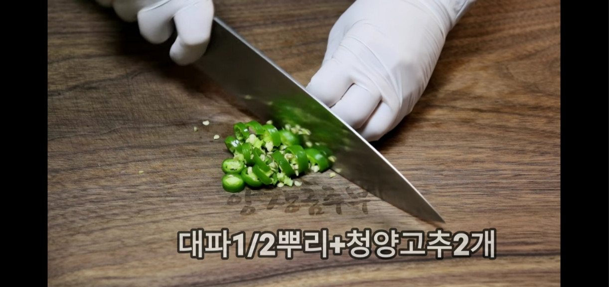대파 반 대와 청양고추 두 개도 작게 썰어주면 더욱 시원하고 얼큰한 콩나물국을 맛볼 수 있습니다.