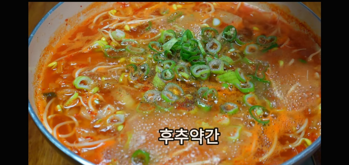 콩나물 비린내가 사라졌다면, 썰어둔 대파와 청양고추, 후추를 약간 넣고 1분 정도만 더 끓여 마무리해주세요.