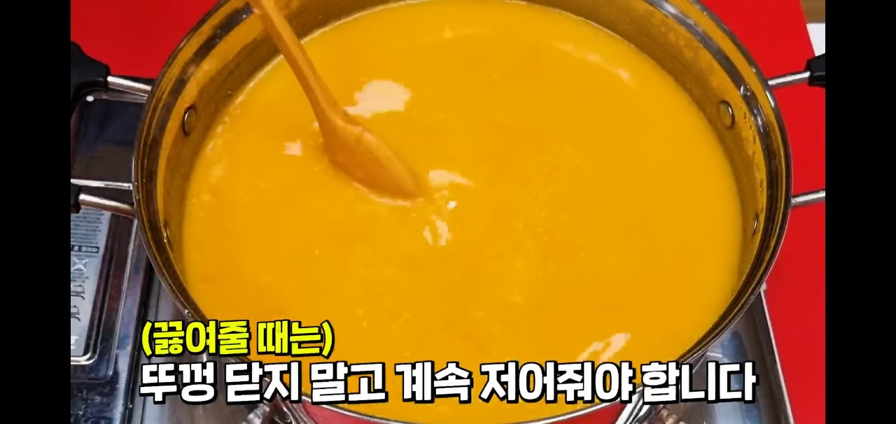 이렇게 계속 저어주면서 5분만 더 끓여주면 오늘의 호박죽 만들기 완성입니다!