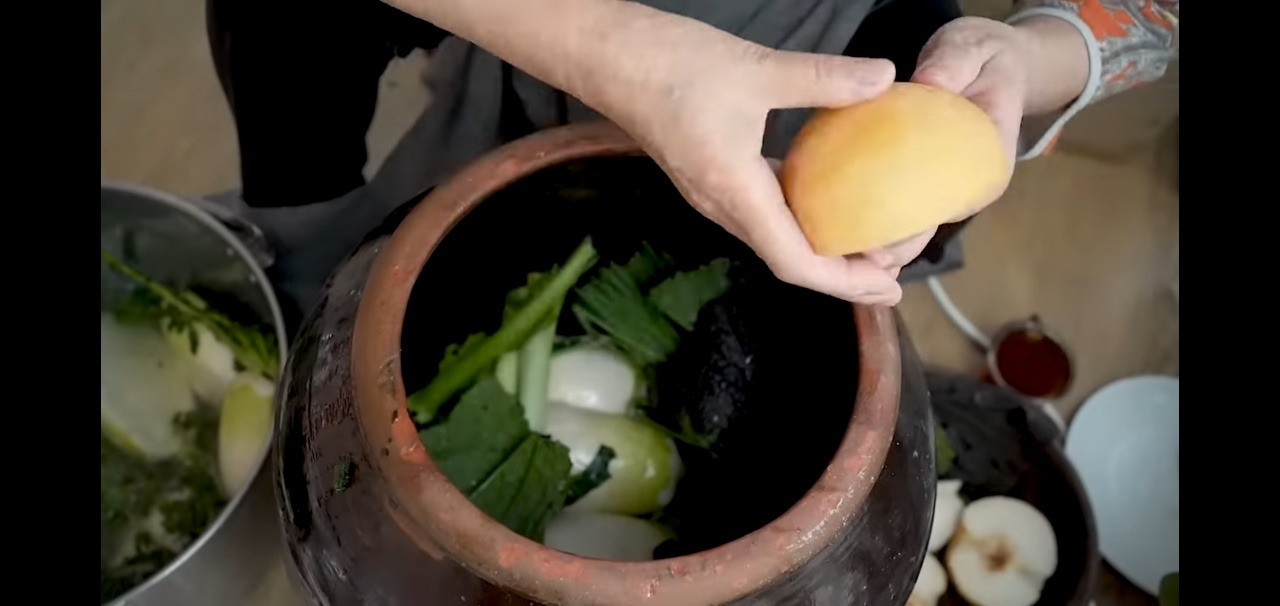 동치미 맛있게 담는법 ⑤ 동치미 재료 장독에 쌓아주기