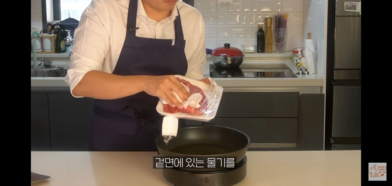 스테이크용 소고기는 냉장고에서 최소 30분 정도 차갑게 유지한 상태로 구워주세요. 그래야 갈색 빛이 돌면서 풍미가 확 올라가는 마이야르 반응이 더 잘 일어납니다. 이후 포장을 뜯고 물기를 반드시 제거한 상태에서 사용해 주세요. 물기가 남아 있으면 마이야르 반응이 잘 일어나지 않습니다. 오늘 소개할 스테이크 맛있게 굽는 법의 핵심은 바로 마이야르 반응입니다!