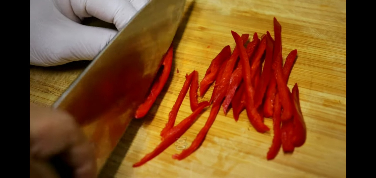 고구마줄기볶음에 알싸한 향을 더해 줄 홍고추는 씨를 빼고 세로로 길게 썰어 주시면 됩니다.