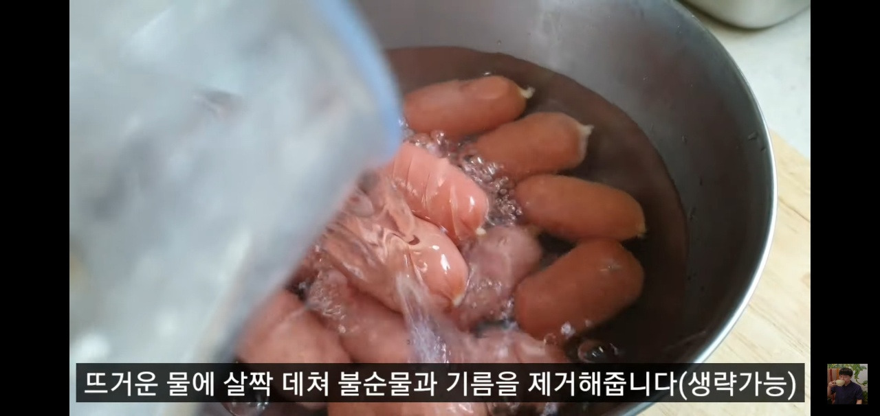 그리고 소시지를 채에 받쳐 물기를 제거한 뒤, 소시지 야채볶음 황금레시피의 다음 단계로 넘어가겠습니다!