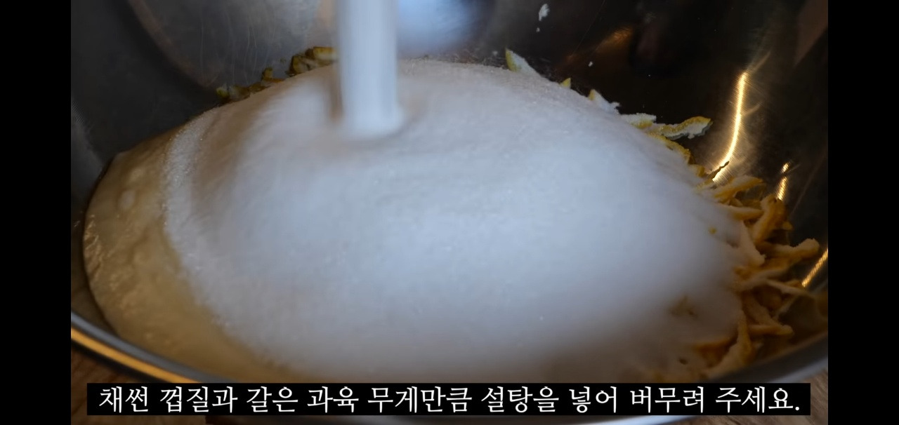 그다음 설탕이 잘 녹도록 골고루 버무려주면 오늘의 유자청 만들기가 완성됩니다!